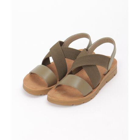 [型番:12830708]合皮とゴムをMIX使用した上品なコンフォートサンダル。クロス部分はゴムを使用する事で、伸縮性がありしっかり足にフィットします。