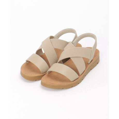 [型番:12830708]合皮とゴムをMIX使用した上品なコンフォートサンダル。クロス部分はゴムを使用する事で、伸縮性がありしっかり足にフィットします。