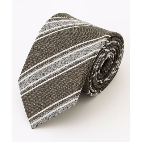 クラシックなレジメンタルストライプ柄。麻のネップ(節)がアクセントとなり、堅苦しすぎないナチュラルで洗練された印象を与えます。