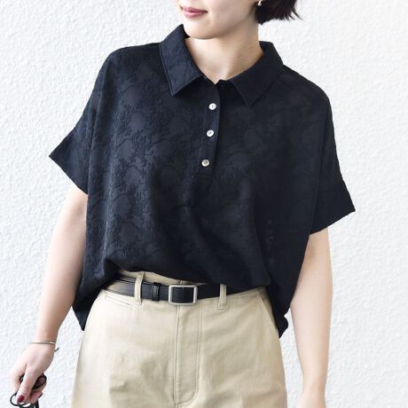 シアー感が可愛いジャカード素材のポロシャツです。