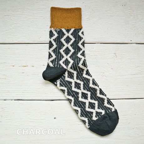 リズム感のある柄と配色がポイントのソックス。