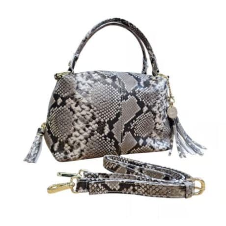 [型番:G90832]ソフトな革を全面に使用し、普段使いに最適なサイズのミニショルダーバッグです。ロング財布、ポーチを収納できるサイズ感なのでちょっとしたお出掛けにピッタリです☆ショルダーベルト、チャーム付き2WAYバッグSize 約W24cm H16m D8cm素材 シルバー、ゴールド、パイソン柄 牛革 ブラック 羊革仕様内装 ファスナーポケット 1 オープンポケット2