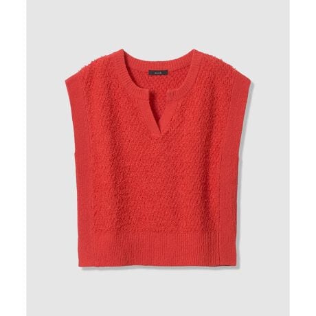 表情のある意匠糸をきゅっと編み込んだプルオーバー。Tシャツやタンクトップにレイヤードして着こなすのがおススメ。ゆるりと身体から離れるので、タックアウトしたままボトムに合わせて決まります。ストンと着るだけで、デイリーウェアを華やかに彩るアイテムです。