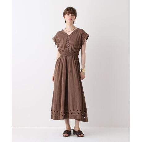 ウェーブがかったレースを様々な箇所に施しアクセントにしたフレンチスリーブのドレス。原料から染色、縫製までを一貫してインドで行っています。素材も染色もオーガニックのものであるため、人体にも優しいサマードレスです。ラフな印象と華やかさを持ち合わせており、夏の様々なシーンで活用していただけます。