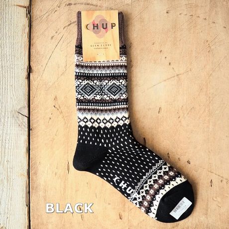 履き心地の良さとオリジナルで素敵な柄が大人気の「チュプ」。現在製造されていないイタリア製ヴィンテージの特殊な編み機を使用し、1目1目ゆっくりと編み上げているため他にはない色鮮やかなニットの風合いを表現。適度な厚みがあるので弾力があり心地良い履き心地です。デザイン柄が非常に複雑なため、1日の生産効率は通常の半分から3分の1程度と作れる量に限りがあります。アイヌ語で「太陽、月、天空の星々」を意味するCHUPは自然が生み出した彩りを丁寧に紡いで、再生糸(エコヤーン)を採用するなど地球環境にも配慮しています。生産は日本。厳選された設備のもと、熟練職人の手による丁寧で精錬されたモノ作りを心がけています。追加生産はなく、数量限定です。