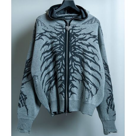 BACKSTAGE PASS(バックステージパス) のX-RAY HOODIE-KNIT(エックスレイフーディーーニット)ロゴジャガード オーバーサイズ ダメージニット パーカーです。