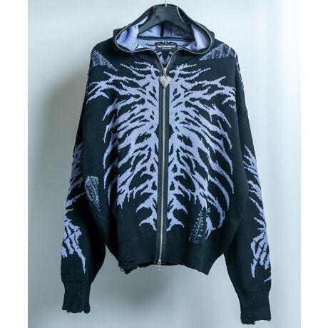 BACKSTAGE PASS(バックステージパス) のX-RAY HOODIE-KNIT(エックスレイフーディーーニット)ロゴジャガード オーバーサイズ ダメージニット パーカーです。