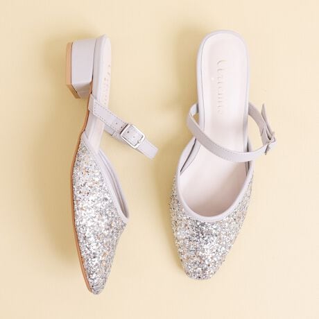 ・星型ラメを散りばめたミュールパンプス。