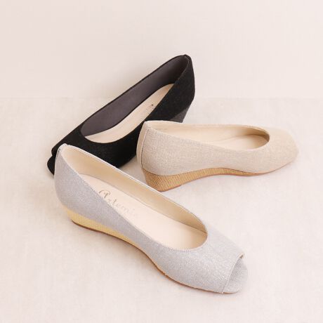 ・細かいラメの上に生地をのせ、歩く度にキラッと上品に輝くウェッジパンプス。