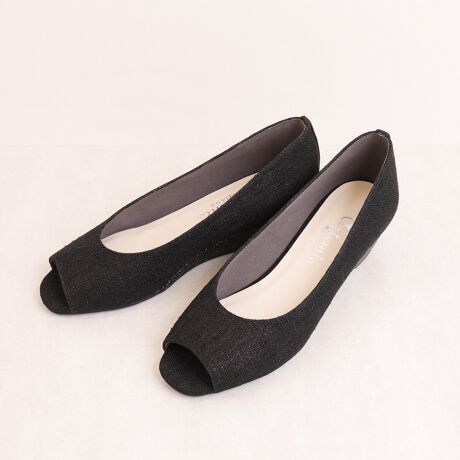 ・細かいラメの上に生地をのせ、歩く度にキラッと上品に輝くウェッジパンプス。