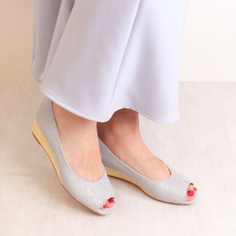 ・細かいラメの上に生地をのせ、歩く度にキラッと上品に輝くウェッジパンプス。