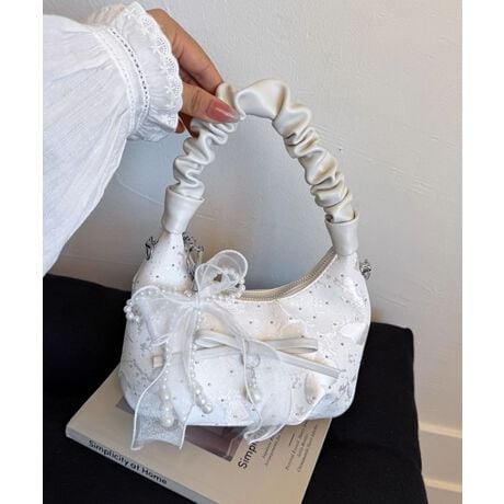 オーガンジーリボン付き ギャザーハンドルミニバッグ