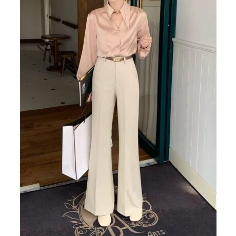腰まわりはすっきりと、裾にかけて自然に広がるシルエットで、スタイルアップ効果が期待できる一本です。