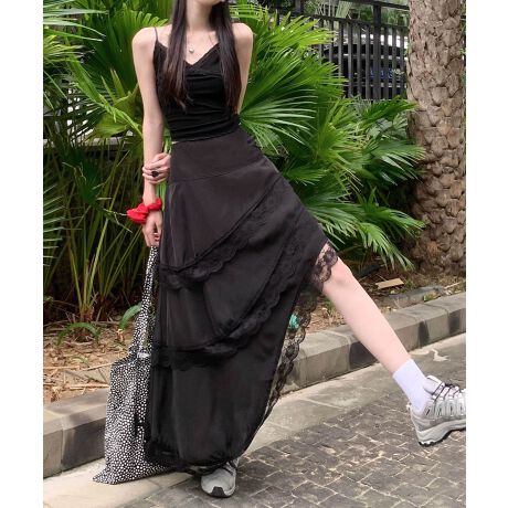 繊細なレースを重ねたアシンメトリーシルエットが魅力的なロングスカート。