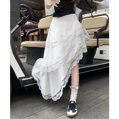 繊細なレースを重ねたアシンメトリーシルエットが魅力的なロングスカート。