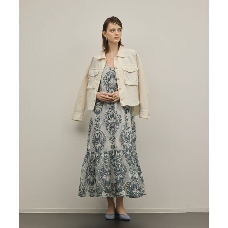 [型番:0126231102]大胆なオーナメントモチーフを全面に刺繍したティアードキャミワンピース。※こちらのモデル着用画像はサンプル品を撮影しております。実際の商品と仕様、加工、サイズが若干異なる場合がございます。予めご了承くださいませ。