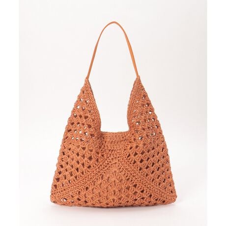 軽やかな雑材を透かし編みで仕上げた、表情豊かなワンハンドルショルダーバッグ。