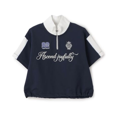 動くたびに揺れるスターチャームが可愛いハーフジップの半袖Tシャツです。大胆なロゴ刺しゅうと配色の切り替えで、スポーティーな印象に仕上げました。裾にドローコードがついており、シルエットの調節も可能。パンツスタイルはもちろんミニスカートとも相性が良く、デイリー使いに重宝します。