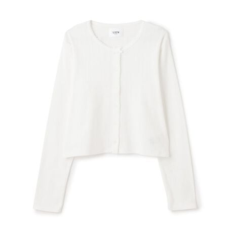 軽やかな着心地に仕上げた針抜きのカーディガンです。衿ぐりのフリルやミニリボンが可愛らしいポイント。生地にはUVカット機能を備えており、紫外線対策に役立ちます。やさしい色合いでさまざまなスタイリングに馴染みやすく、デイリー使いにおすすめです。