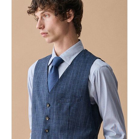 2.コーディネートしやすいメランジシャンブレー複数の色糸を織り交ぜた霜降り調の無地。単色にはない奥行きがあり、Vゾーンに上品な表情をプラスします。