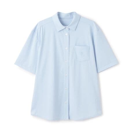 さわやかな雰囲気がただよう半袖のカットソーシャツです。きちんと感のある角衿と、刺しゅう入りの胸ポケットがポイント。UVカット加工をほどこしており、紫外線対策にも役立ちます。ゆったりシルエットで着心地も良く、デイリー使いにおすすめです。