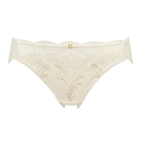 フロントのウエスト部分は、ラッセルレースのスカラをあしらい、