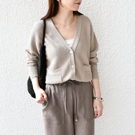 軽やかに着用いただける、春夏にぴったりのペーパーライク素材のカーディガン。