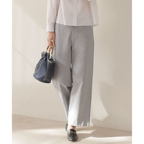 ■デザイン縦のラインを引き立てる、パイピングコードデザインがポイントのストレートパンツ。程よくストレートなシルエットは、穿くだけできれいめな印象を与えてくれます。ウエスト部分にはバックルのデザインを施し、さりげないアクセントに。また、後ろウエストにはゴムを入れることで、見た目のきちんと感はそのままに、締め付け感の少ない快適な穿き心地を叶えています。同素材のジャケットとセットアップでの着こなしもおすすめで、通勤シーンからお出かけまで幅広く活躍します。裏地なしです。