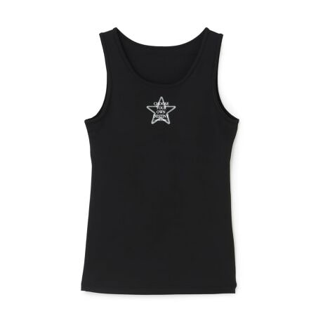 スターとロゴのグラフィックがスタイリッシュなタンクトップです。パッドを縫いつけ、洗濯してもずれにくいカップ内蔵仕様にしました。メッシュ素材と吸水速乾により、汗をかいてもさらりとした着心地を実感できるアイテムです。