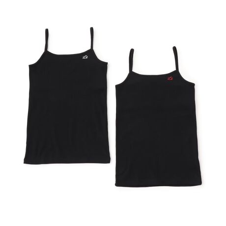 ワンポイントのロゴ刺しゅうがシンプルながらも可愛いキャミソールです。胸元の生地を二重にしており、膨らみだした胸をやさしくカバー。2枚セットなので洗い替えにも重宝します。学校の宿泊行事やダンスなど習い事の日のインナーにぴったりです。