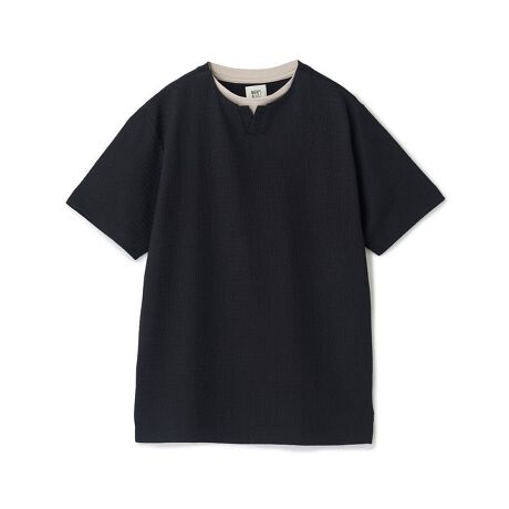 【一枚でサマになるフェイクレイヤードキーネックTEE】