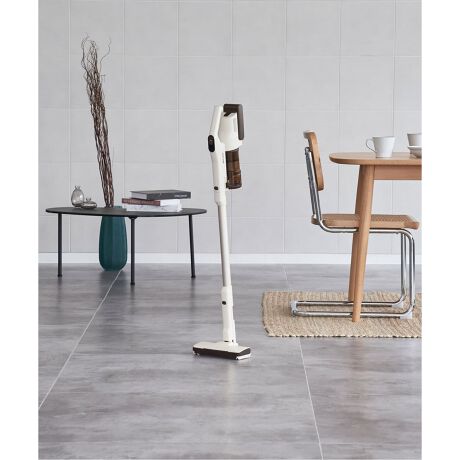 スタンド無しで自立し、掃除中でもサッと置くことができる便利なクリーナー。真っ直ぐ立つため省スペースに置きやすく、収納の邪魔になりません。