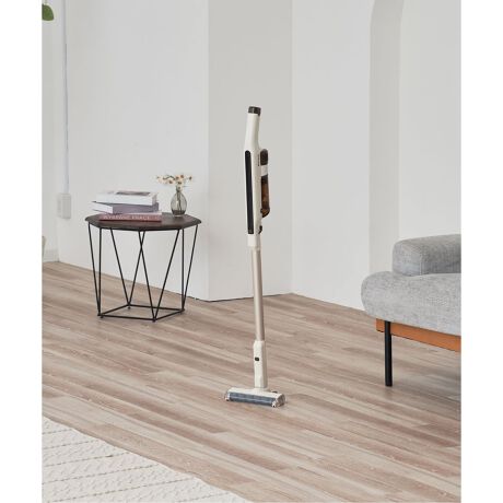 スタンド無しで自立し、掃除中でもサッと置くことができる便利なクリーナー。真っ直ぐ立つため省スペースに置きやすく、収納の邪魔になりません。
