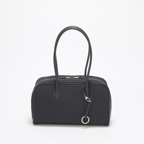 肩に心地よく収まる細身のレザーハンドルに、底まで大きく開くダブルファスナーで荷物の出し入れもスムーズ。