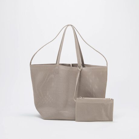 透け感のあるニットジャガードが、装いに軽さを添えるバッグ。