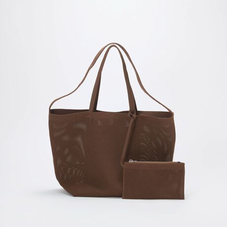 透け感のあるニットジャガードが、装いに軽さを添えるバッグ。