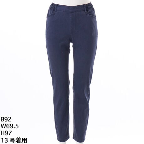 [型番:6701003]人気のレギパン。ストレッチ性抜群です。今回の生地は表面が綿の様な風合いです。製品洗いをし、あたり感も付けています。ベーシックなブラックと、少し明るめのネイビーの2色展開。グリーンノート 大きいサイズ レディース ゆったり ストレッチ 伸びる レギパン 6701003