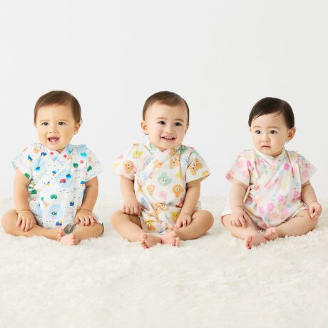 打ち合わせ仕様でお着替えしやすく、股下はホック付きでオムツ替えも簡単。