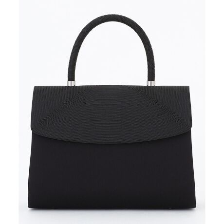 ■デザイン被せに細かいコード状のラインを引いたハンドバッグです。立体的なコード刺繍がエレガントな雰囲気、編み手の持ち手とシルバーの留め具がより高級感を演出しています。小ぶりで持ちやすいスタンダートなデザインです。流行にとらわれない定番デザインで長くお使いいただけます。黒の色は深く、フォーマルの装いに馴染みます。