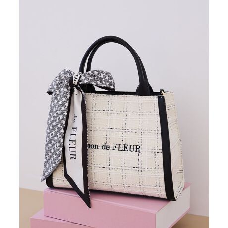 春らしいキャンバス調のツイード素材に、オリジナルのスカーフがアクセントになった2WAYトートバッグ。