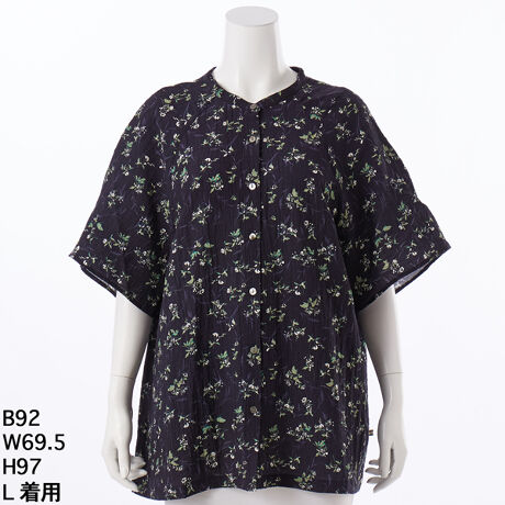 サッカーボタニカルプリントブラウス【グリーンノート】【大きいサイズ】【レディース】【L・LL号】