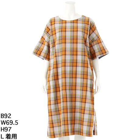 [型番:6705102]ナチュラル感がありつつ綺麗な色合いのマドラスチェックを使用。体系カバーしてくれるロングチュニックは夏の必需品。レギパンとのコーディネイトがおすすめです。衿ぐり、袖口、スリット裏にダンガリーを付けてポイントにしています。袖口を折り返して見せると素敵です。グリーンノート 大きいサイズ レディース ゆったり シャツ 半袖 涼しい チュニック