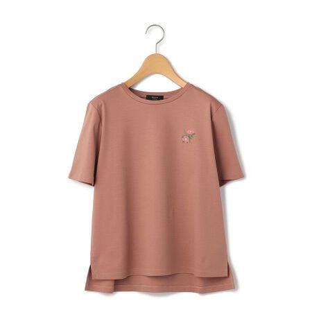 [型番:78263296031]一枚あるとスタイリングに重宝する、ジャストなサイズ感のTシャツ。お花の刺繍が、上品なワンポイントを添えています。裾に前後差があり、すっきり着こなせるのも嬉しいポイント。 ※商品画像はサンプルを使用しているため、実際の商品と色味などの仕様が異なる場合がございます。予めご了承ください。model:T.172/B.83/W.59/H.87着用サイズ:38
