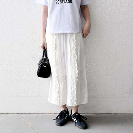 スリットより上部は裏地付きで一枚でも安心して着用でき、下部はシーズンムード漂う透け感を楽しめます。