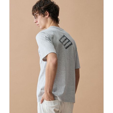 ジョセフアブードのアイコンである「ダイヤロゴ」を後身頃にハンドペイント(手書き)風にプリントしました。淡色(オフホワイト・トップグレー)は染み込みプリント、濃色(ネイビー)は生地の色を抜きながらプリントする「着色抜染」を採用。生地の柔らかさを損なわず、落ち着いた大人の色合いに仕上げています。襟元のリブは2種類の編み組織を組み合わせ、細部までデザインにこだわりました。
