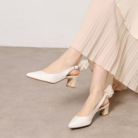 フェミニンな印象ながらも、オン・オフどちらにも対応出来るデザインで、華やかさと実用性を兼ね備えた、大人可愛い一足です。
