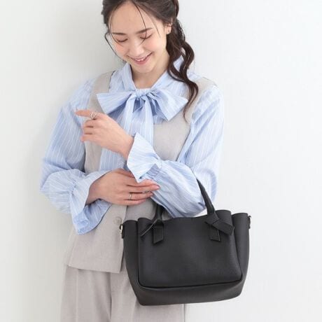 トートバッグのハンドルの根本部分がリボンのようにキュッと結んだデザインになっています。