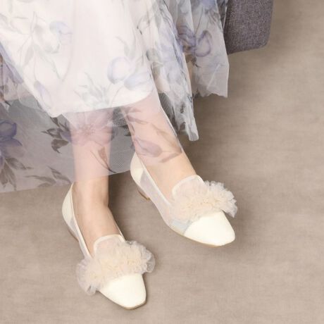 フリルなしでも可愛いラメチュール材が春らしい軽やかさを感じさせ、抜け感のある足元を演出。