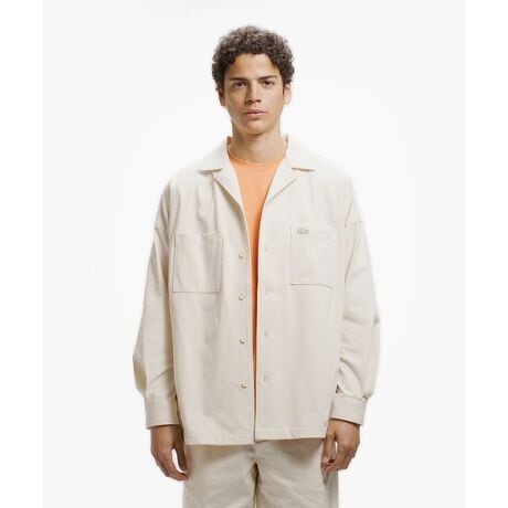 [型番:CH013J-99]ブランドのアイコン素材を用いたオープンカラーシャツジャケット・ポリエステル100%の鹿の子素材・ヌケ感を演出するオープンカラーデザイン・ファッションコンシャスなシルエットを生むドルマンスリーブ・両胸パッチポケットの左に同色ワニロゴパッチLoose Fit
