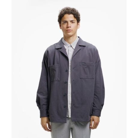 [型番:CH013J-99]ブランドのアイコン素材を用いたオープンカラーシャツジャケット・ポリエステル100%の鹿の子素材・ヌケ感を演出するオープンカラーデザイン・ファッションコンシャスなシルエットを生むドルマンスリーブ・両胸パッチポケットの左に同色ワニロゴパッチLoose Fit